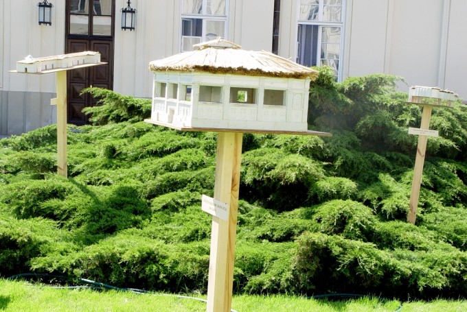 Cykl, zapoczątkowany przez Dokarmiaj niebieskie ptaki - pracę w formie karmnika przedstawiającego makietę budynku Zachęty w skali 1:100, składa się z czterech obiektów rzeźbiarskich - karmników-makiet budynków galerii i muzeów wykonanych z pianki styrodurowej, ze słomy i z elementów metalowych. Karmniki, wykonane w takiej samej skali, powstały na kolejne pokazy objazdowej wystawy Pod flagą biało-czerwoną. Nowa sztuka Polski, organizowanej przez Zachętę – Narodową Galerię Sztuki w czterech miastach: Tallinie, Wilnie, Niżnym Nowogrodzie i Moskwie od stycznia do sierpnia 2004 roku. Do pracy jest włączana zawsze wspomniana makieta budynku Zachęty oraz tablica z mapą ilustrującą położenie geograficzne budynków. Obiekty przeznaczone są do eksponowania na zewnątrz.