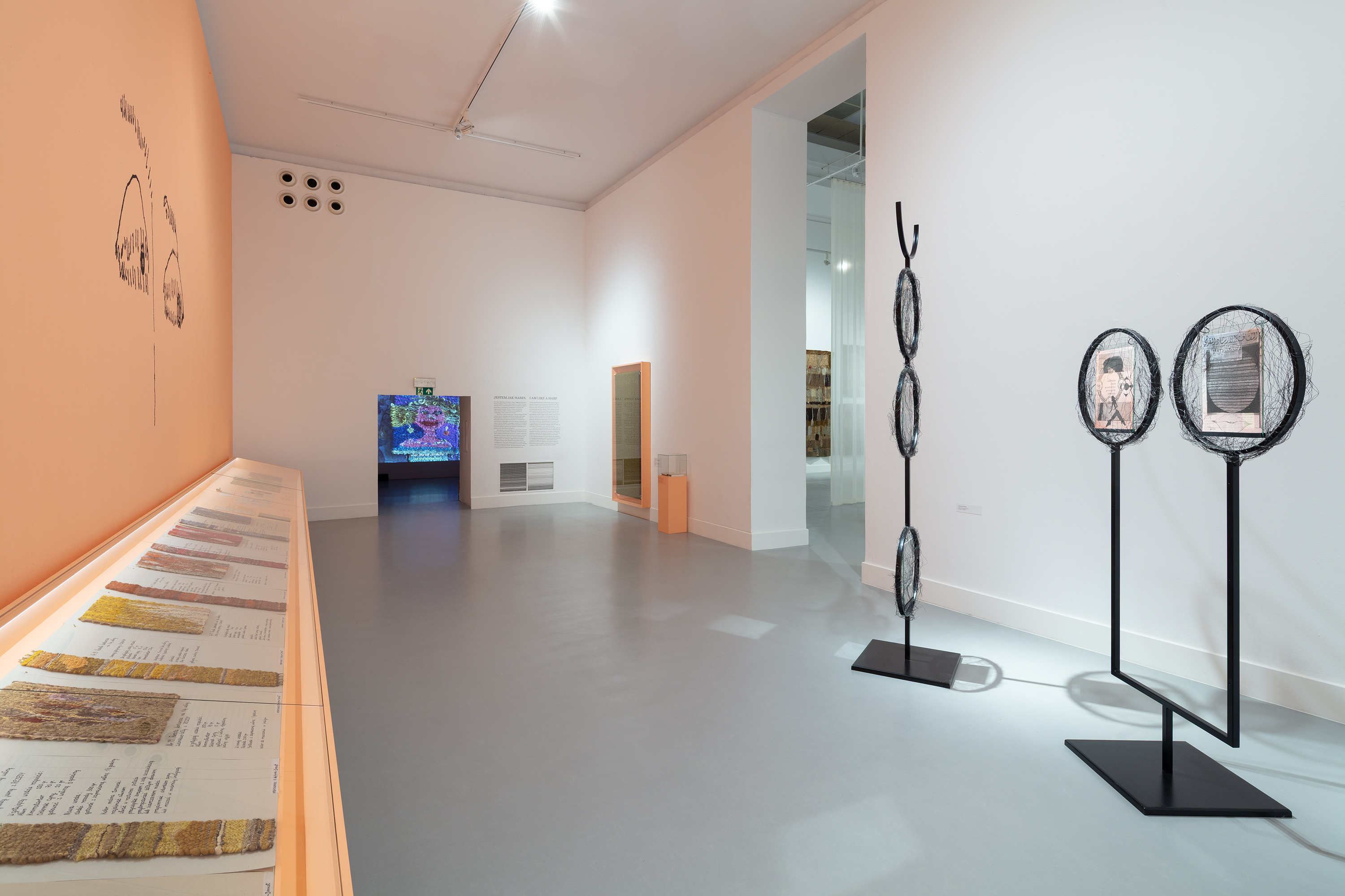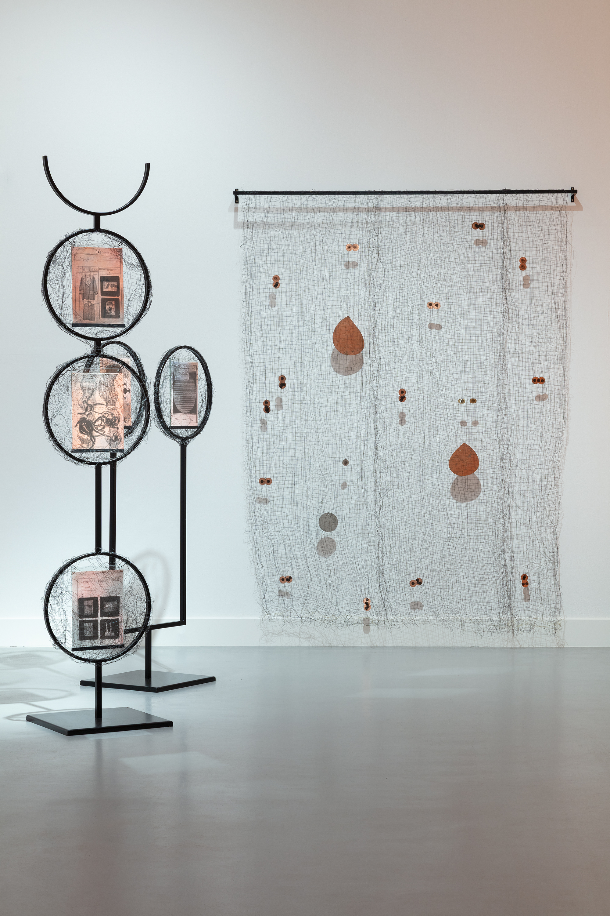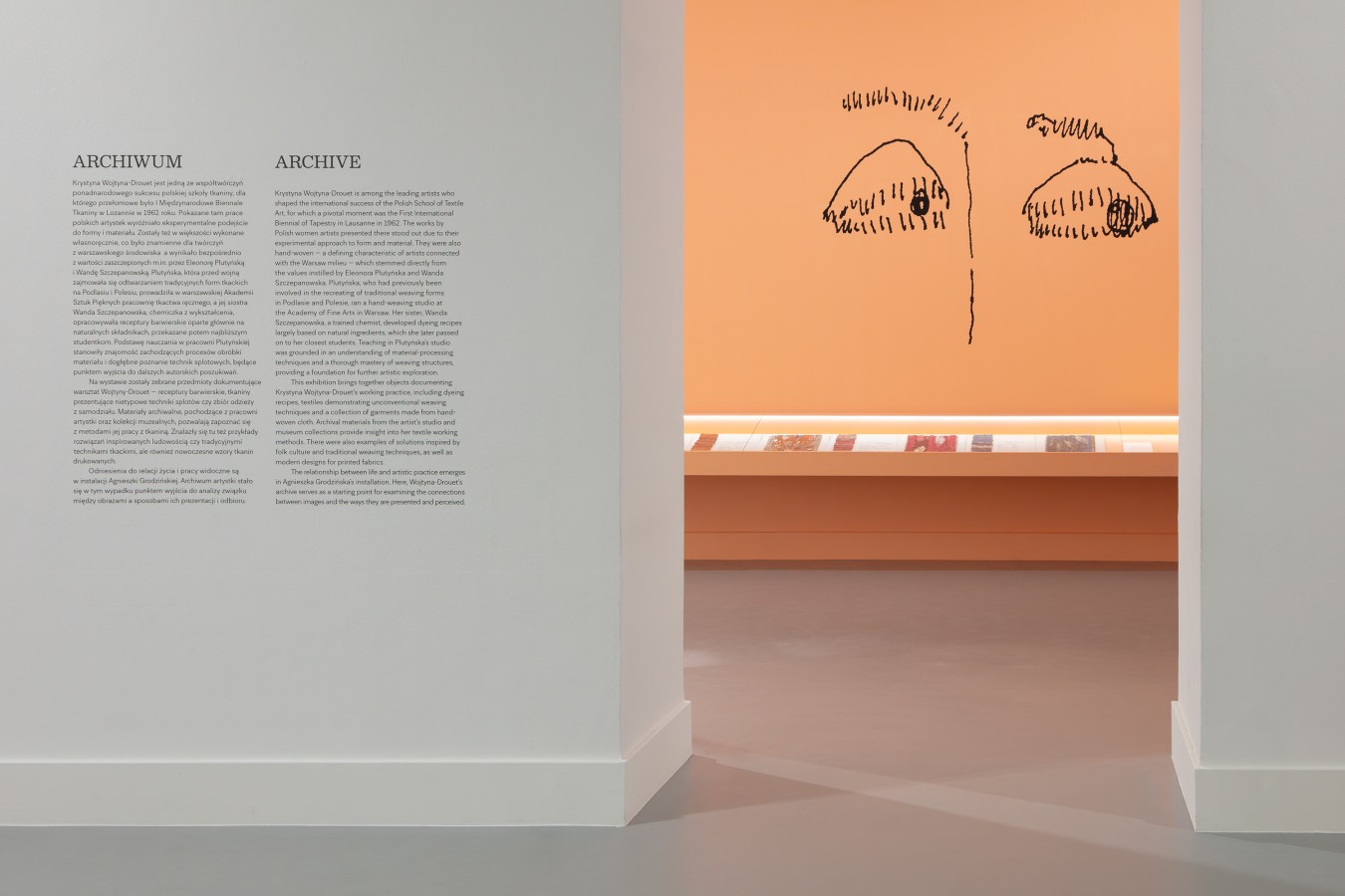 11. Wystawa Krystyna Wojtyna-Drouet. Ja dla siebie nie istnieję, Zachęta – Narodowa Galeria Sztuki, 20.02 – 04.04.2026, Agnieszka Grodzińska, Fiber Drift-Threaded Archive, instalacja, fot. Daniel Rumiancew / archiwum Zachęty, CC BY-SA