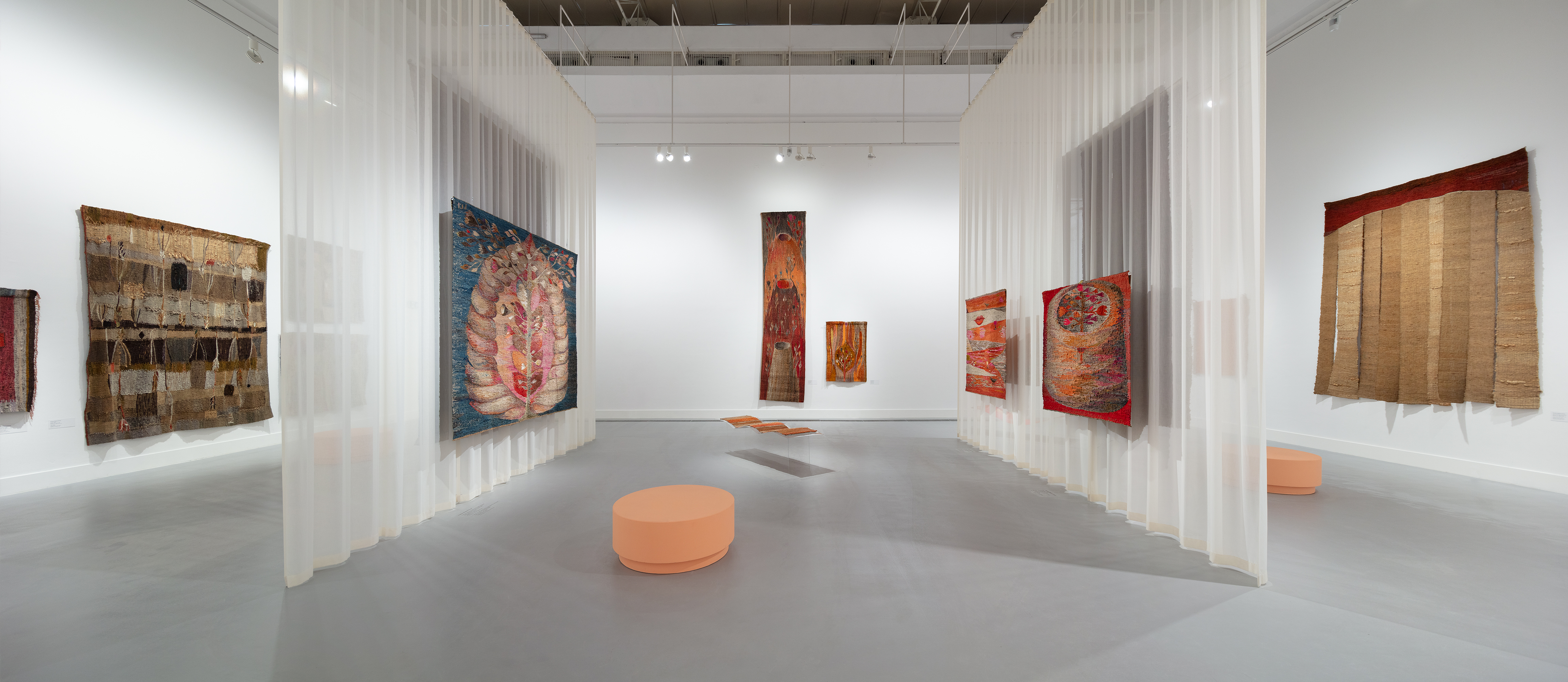 2. Wystawa Krystyna Wojtyna-Drouet. Ja dla siebie nie istnieję, Zachęta – Narodowa Galeria Sztuki, 20.02 – 04.04.2026, Uliczka, 1962, gobelin: len, wełna, sizal, Centralne Muzeum Włókiennictwa w Łodzi, fot. Daniel Rumiancew / archiwum Zachęty, CC BY-SA